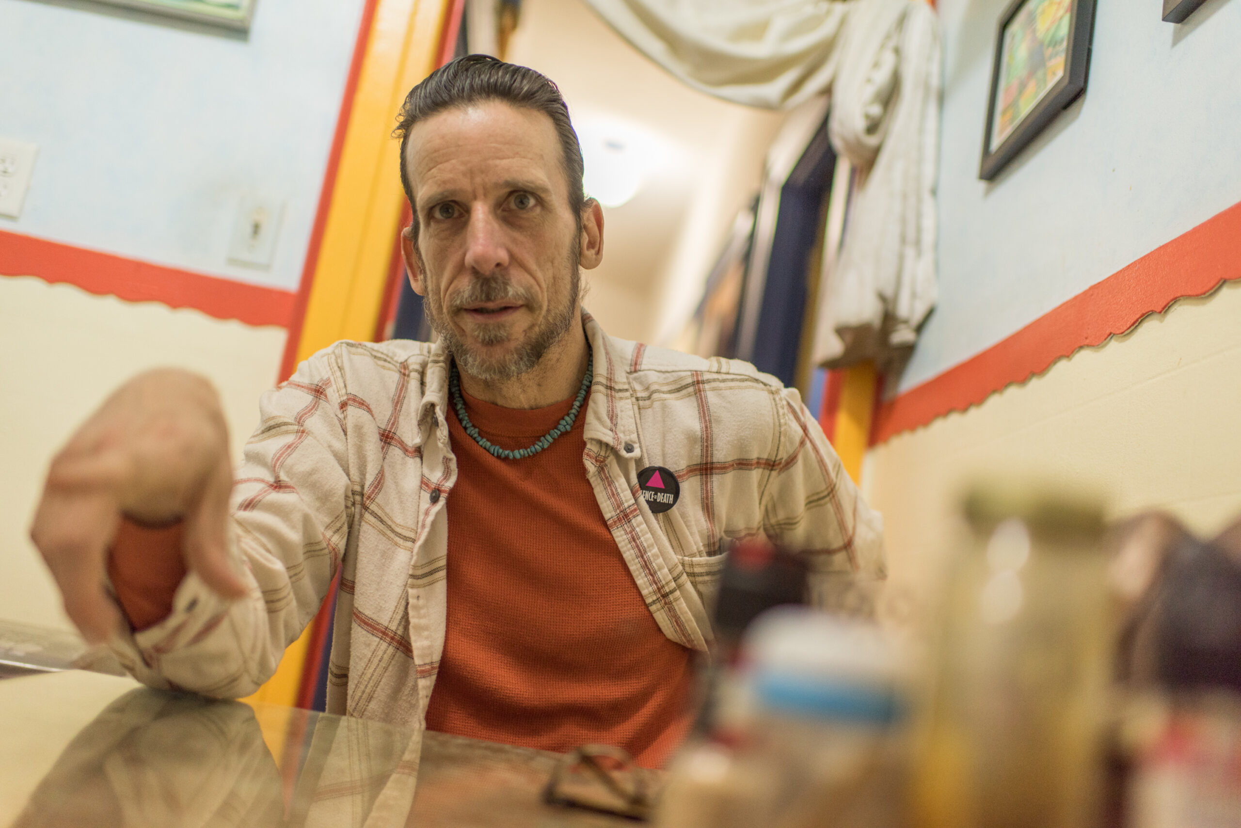 He started doing AIDS activism 20 years ago as Sister Lotti Da with the Sisters of Perpetual Indulgence (http://www.thesisters.org/) before it was a personal issue. Since then, in 2000, he seroconverted (meaning that the HIV antibodies develop and become detectable), and immediately after that he became acutely ill and had to go on the treatment cocktails for his survival. Now AIDS activism wasn’t only about his friends being trapped in the dire social context of the disease but also became about his own health and safety. Living with AIDS he has to cope with the high cost of medication and treatment. The high cost is not only monetary, but physiological as well. It turns out that he doesn’t tolerate the medications very well, and he points out that this intolerance to treatment is more common than people are lead to believe. If you look at the literature and advertising about AIDS, a positive picture is painted of those on treatment. Even though fewer people are dying from AIDS, the reality is that many people are struck with a litany of side effects including diarrhea, high blood sugar, liver problems, nausea, vomiting, rash, jaundice, and the list goes on depending on the regimen (and personal tolerance to that regimen) that they are receiving. Living with AIDS is not an easy task, though he feels fortunate to still be alive, Hucklefaery has been chronically sick from the treatments, gone bankrupt twice trying to meet the cost, and even needed public assistance shortly after his diagnosis.