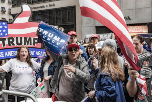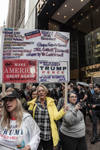 Rallies on both sides of the political divide have been forming in front of Trump Tower and occasionally Trump appears to rally his base.
