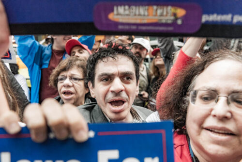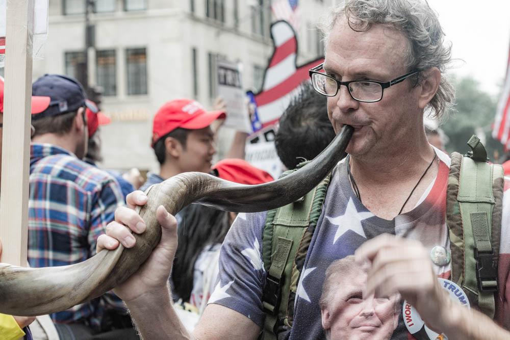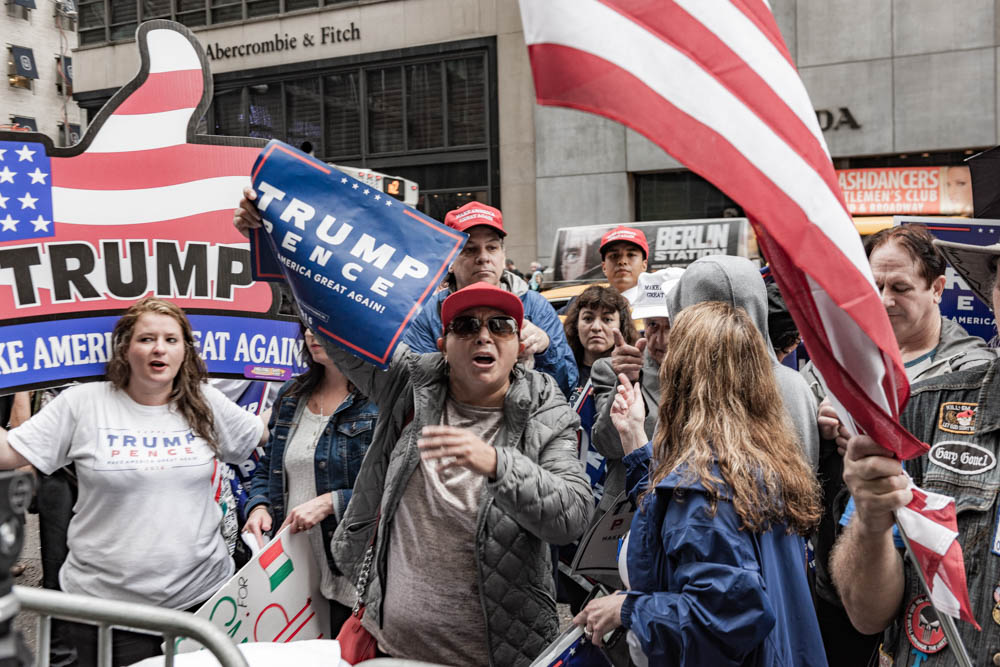 The crowd was loud, and as it is with a lot of events in New York, there were a few costumes and a lot of character. Counter protesters held signs up across the street so that the event would not turn violent.